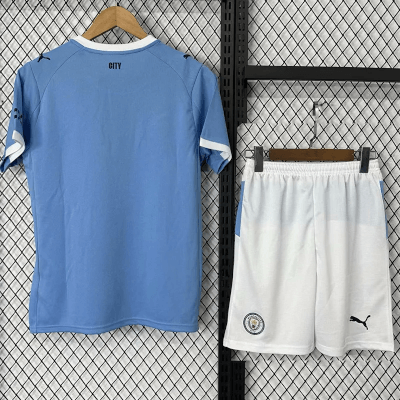 Bär de ljusblå färgerna med stolthet med den nya hemmatröjan för barn säsongen 2026! Manchester City står för teknisk briljans, dominans och en modern fotbollsfilosofi. Denna ikoniska tröja kombinerar klubbens stolta historia med en fräsch design, nu i storlekar perfekt anpassade för nästa generations supportrar på Etihad Stadium. Ett måste för varje ungt fan som vill visa sin lojalitet till Cityzens. Anpassa tröjan med barnets eget namn eller hylla en favoritspelare som Erling Haaland, Kevin De Bruyne eller Phil Foden med ett personligt tryck på ryggen.