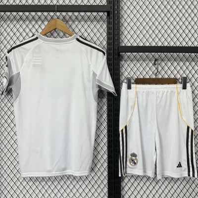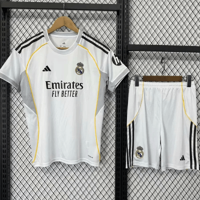 Låt de yngsta fansen bära den legendariska vita tröjan med stolthet! Real Madrids hemmatröja för barn säsongen 2026 är en symbol för klubbens oöverträffade historia och vinnarkultur, nu i storlekar anpassade för nästa generations supportrar. Denna ikoniska design är ett måste för varje litet fan som drömmer om att spela på Santiago Bernabéu. Anpassa tröjan med barnets eget namn eller hylla en superstjärna som Kylian Mbappé eller Jude Bellingham med ett personligt tryck på ryggen.