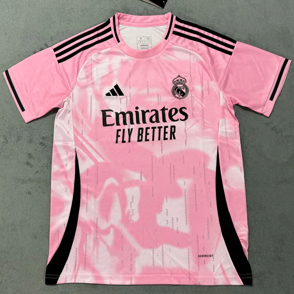 Stick ut från mängden med denna exklusiva Real Madrid Special Edition-tröja för säsongen 2026! Denna unika fans-tröja kommer i en livlig rosa färg som kombinerar klubbens kungliga elegans med en modern och djärv estetik. Designad speciellt för supportrarna, erbjuder tröjan en bekväm passform och högkvalitativa detaljer som gör den perfekt för både läktaren och gatan.